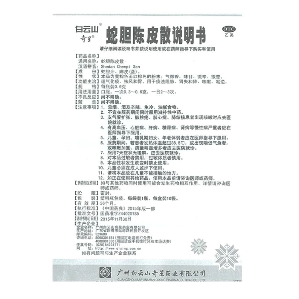 【Pinyin Name】Bai Yun Shan She Dan Chen Pi San